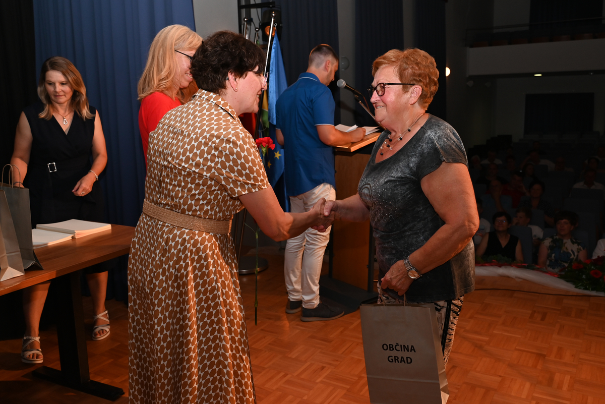 Ob tej priložnosti je Darinka Bauer prejela Zahvalno listino Občine Grad za prizadevno delo na področju socialno humanitarne dejavnosti v občini Grad ter za dolgoletno vodenje KORK Grad. Hkrati smo se na tej slovesnosti zahvalili tudi članom Krajevnega odbora RK Grad za njihov trud, vso pomoč, požrtvovalnost in srčnost, ki jo člani namenjajo naši skupnosti, našim občanom. In jim zaželeli še več moči, da bodo še naprej opravljali svoje poslanstvo - biti človeku blizu. Namreč moramo se zavedati, da vsako dobro delo šteje in dela svet boljši, kajti ključ do sreče je v skrbi za vse.