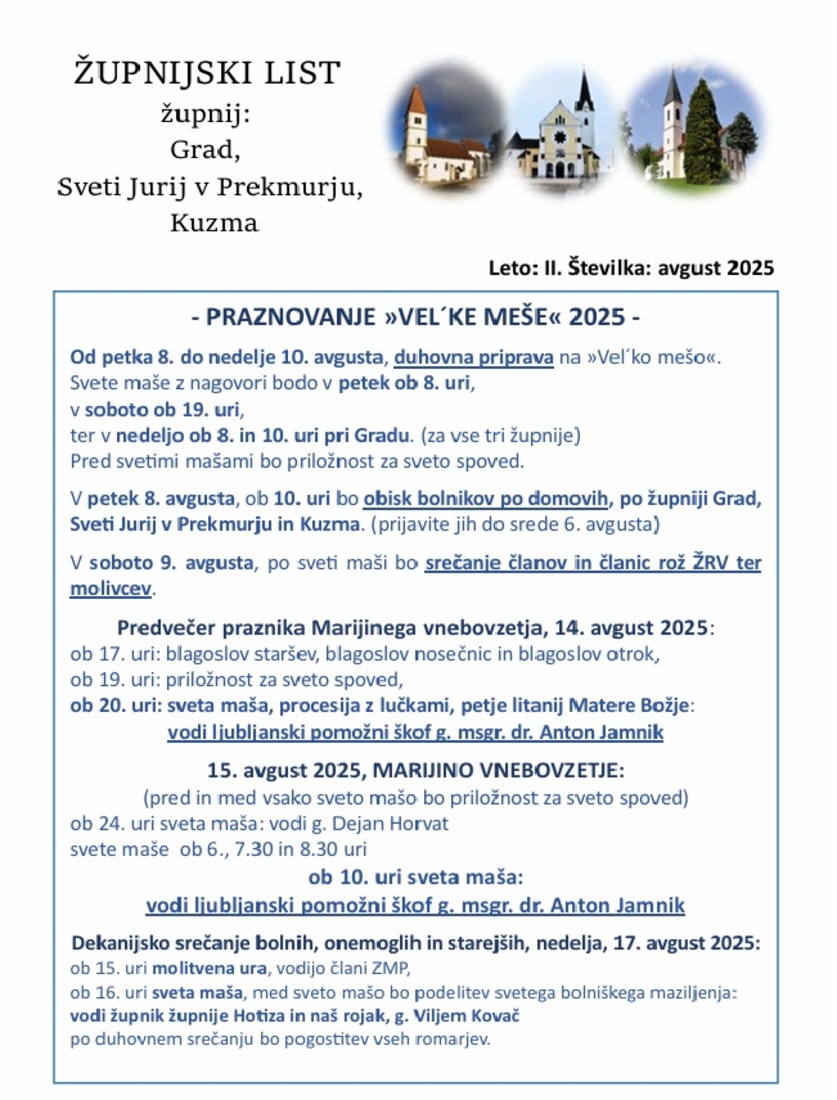 📅 Predvečer praznika – četrtek, 14. avgusta: