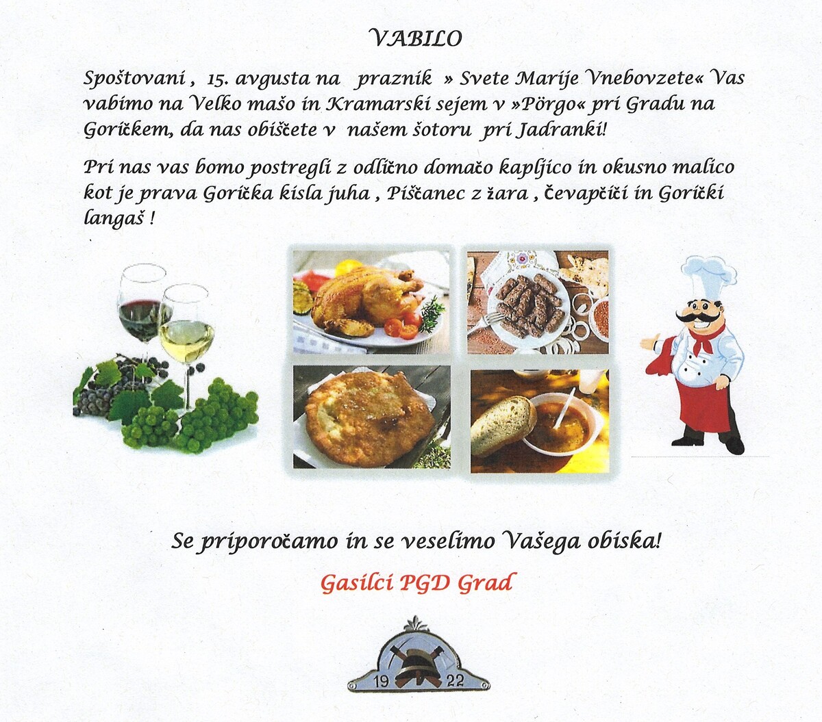 15. avgust – PRAZNIK MARIJINEGA VNEBOVZETJA – Velika maša pri Gradu