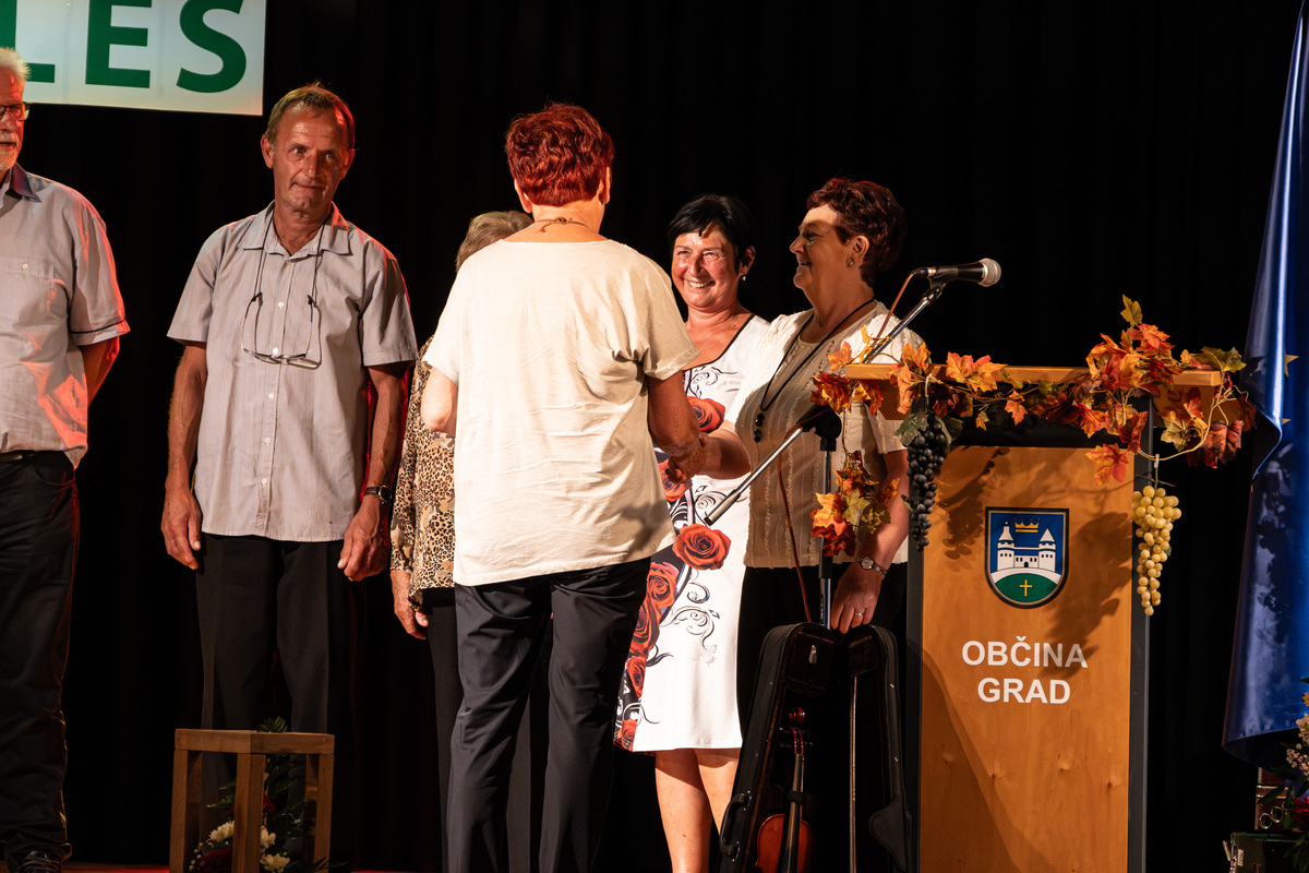 Imela sem čast, da sem večer vodila in povezovala. Ob začetku sem v imenu Občine Grad pozdravila vse prisotne ter poudarila, kako pomembno je, da ohranjamo tradicijo, kulturo in ljudsko izročilo ter ga prenašamo na mlajše rodove.