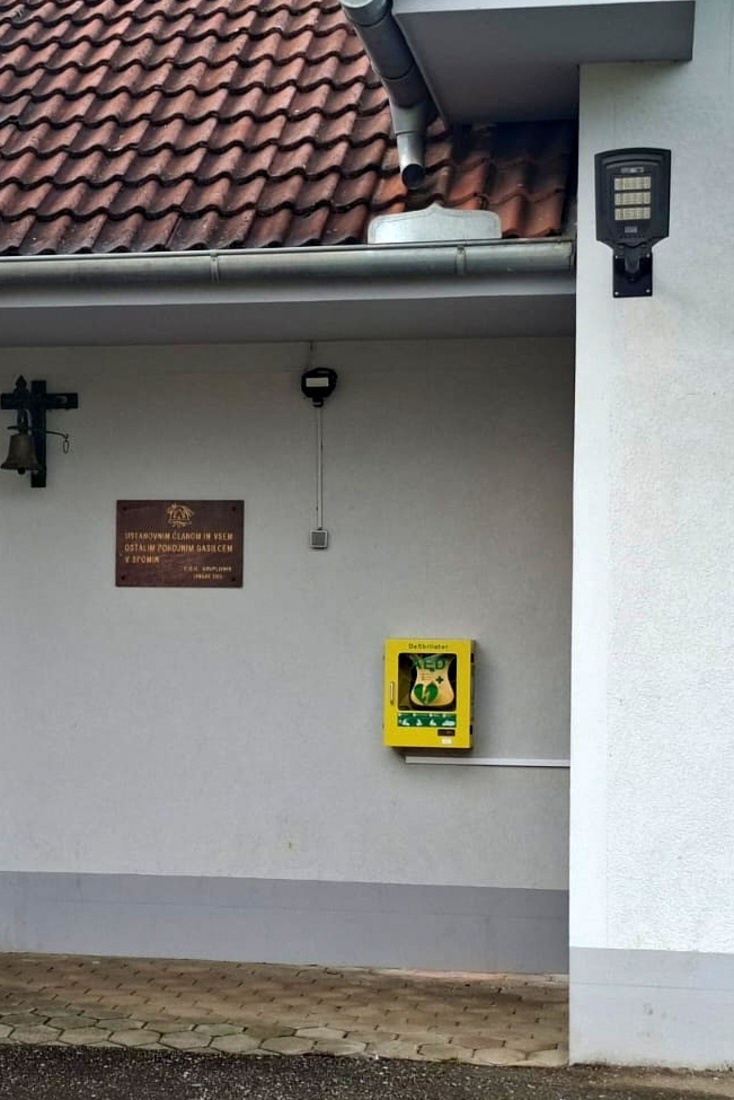 AED, nabavljen z donatorski sredstvi, je nameščen na zgradbo Gasilskega doma v Kruplivniku.