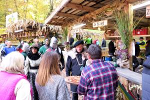 Obiskovalce tako pričakajo domiselno začasno postavljeni, okrašeni »štandi« z domačo kulinariko (gibanice, repnjače, pogače, posolanke, bograč, pečeni kostanji in še bi lahko naštevali).