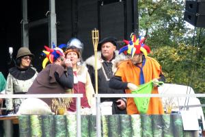 In ko se je narava obarvala v svojo jesensko idilo, ko je po tedenskem dežju grajski park obsijalo sonce, so se oglasile fanfare in naznanilo se je, da se začenja »NOČ GRAČKOGA ZMAJA«. Pomen prireditve in vsebino sta podala voditelja Macho in Mejke, ki sta pridrvela s »teligami« kot dvorska norčka med obiskovalce. Cel popoldan sta nam skozi šaljiv način prikazovala dogodke in prilike, ki so se nekoč dogajali za grajskim obzidjem v mogočnih sobanah… Pozdravila sta nas tudi grajska gospoda grofica in grof, ki sta v spremstvu svojih vitezov pobrala tlako in zadovoljna s pobranim sta zaplesala na zvoke Ansambla Horizont.